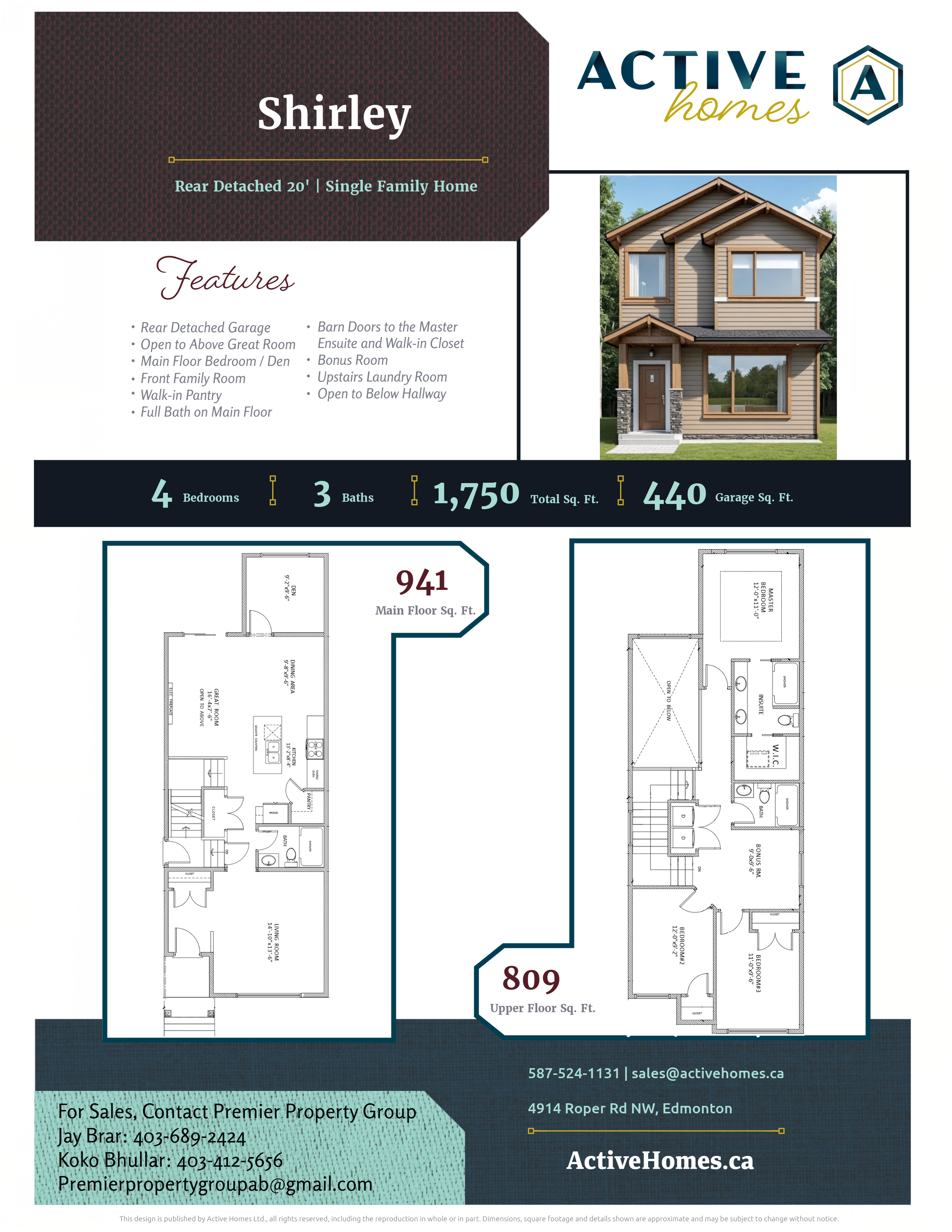 Welcome to Shirley, Active Homes’ first Single Family Homes in the Calgary area. Thoughtfully designed floorplan and impressive amenities make the most of the space and create a livable environment. With tall ceilings and amenities like quartz countertops, an electric fireplace, and open to above great room create an air of luxury and sophisticated living.